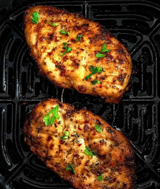 The air fryer makes chicken breasts incredibly tender and juicy with just a couple of minutes of prep and a few seasonings.